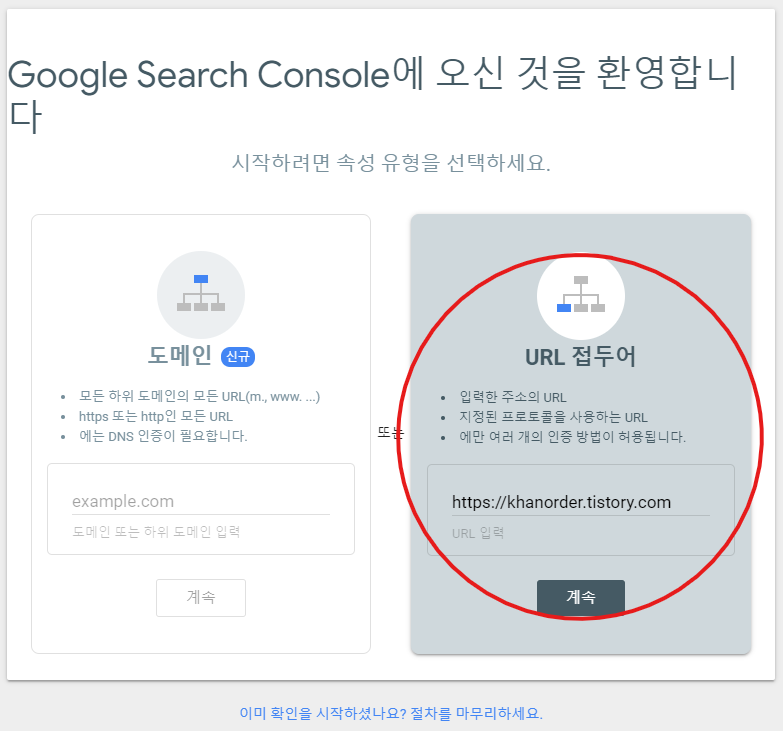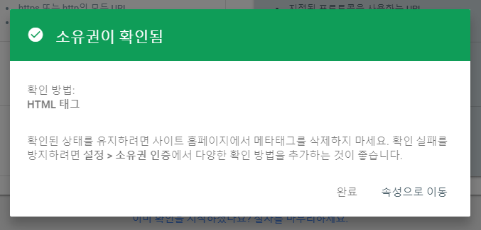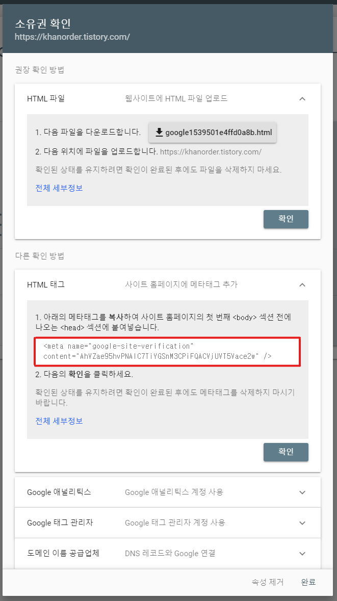 그러면 다시 홈페이지에 소유권을 확인하는 화면이 나옵니다.