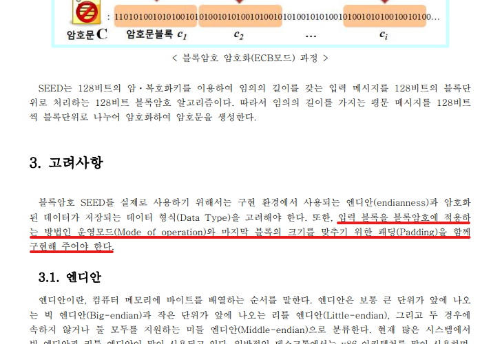 그래서 개발 매뉴얼 PDF 내용중 고려사항에서 좀 더 뒤로 가면 패딩방법 3가지를 설명하주고 있습니다.