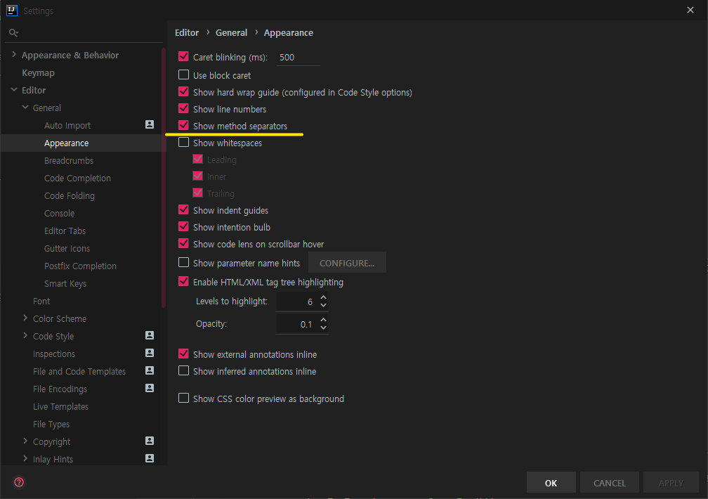 메소드 사이에 구분선이 생겨서 가독성이 좋아집니다~